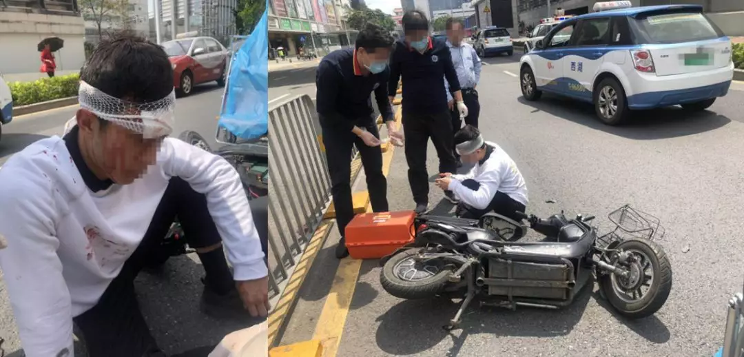 由反向橫穿馬路而來(lái)的電動(dòng)車(chē)與曾某駕駛的出租車(chē)發(fā)生碰撞,電動(dòng)車(chē)應(yīng)聲倒地,駕駛員吳某頭部受傷,流血不止,電動(dòng)車(chē)受損嚴(yán)重!