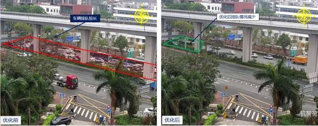 沙河西/同發(fā)路口優(yōu)化前后對比