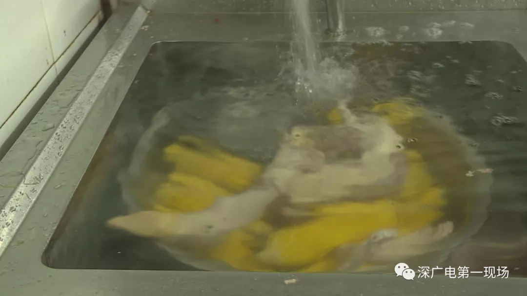 廚工在一個(gè)池子在宰殺著牛蛙,