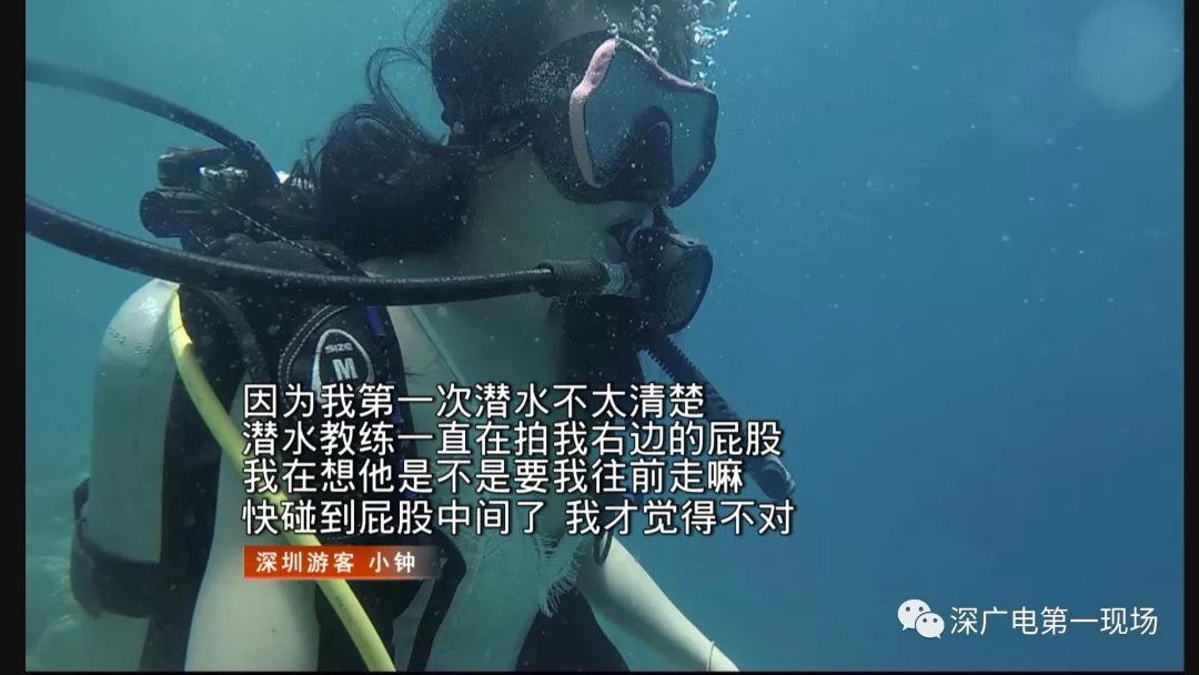 深廣電第一現(xiàn)場(chǎng)2019年4月11日訊 近幾年,越來(lái)越多深圳市民喜歡到東南亞海島旅游,而學(xué)潛水、探索海底世界也逐漸成為了一項(xiàng)熱門運(yùn)動(dòng),就算你還沒(méi)有體驗(yàn)過(guò)想必也一定聽(tīng)說(shuō)過(guò)啦!不過(guò),最近有市民跟我們報(bào)料她們?cè)隈R來(lái)西亞潛水時(shí)遭遇了水下“色狼”!不僅被揩了油而且還不知道怎么處理!