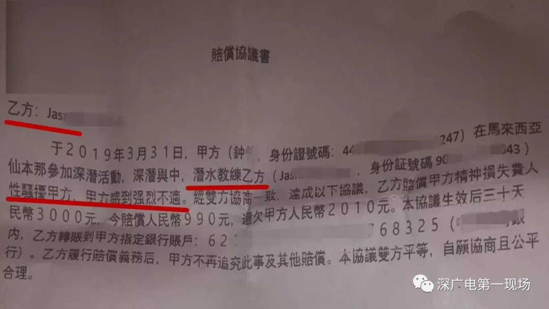 貌似事情有了結(jié)果,但兩天前小鐘和小丹返回了國(guó)內(nèi),但賠償卻一直沒(méi)有兌現(xiàn),于是兩人選擇向媒體曝光,提醒市民外出旅游潛水時(shí)提防“色狼”。