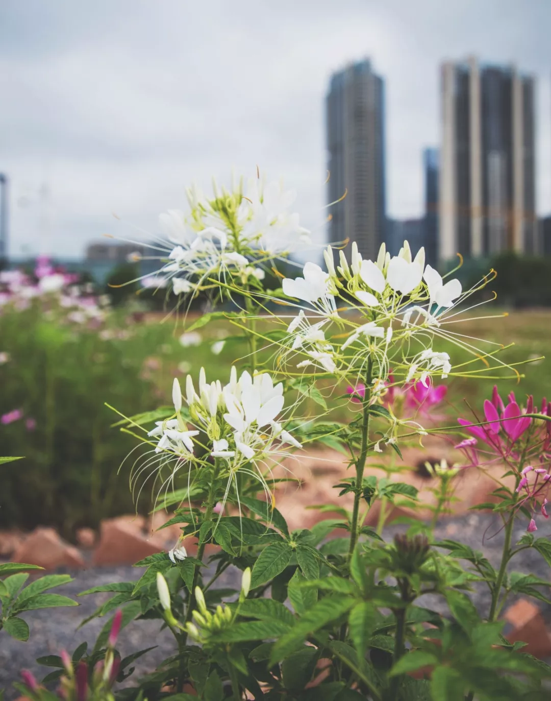 乍一看是不是有點(diǎn)像彼岸花?不過它倆卻算不上什么親戚。醉蝶花盛開時(shí),總狀花序形成一個(gè)豐滿的花球,朵朵小花猶如翩翩起舞的蝴蝶,靈動(dòng)迷人。