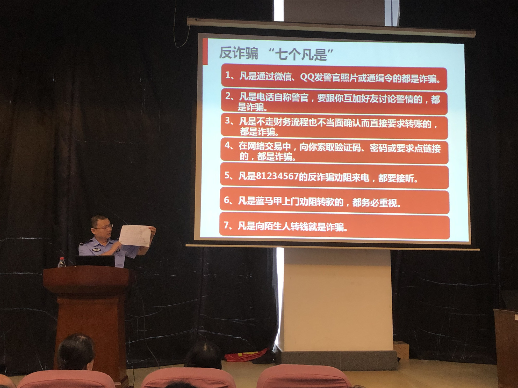 4月12日下午,惠杰副所長、社區(qū)民警黃旭波、孫立波在財富廣場小禮堂開展香蜜湖“反詐騙課堂”第一場,向財富廣場各公司負責人、財務人員開展反詐騙宣傳,“反詐騙宣傳”PPT包含反詐騙工作面臨的嚴峻形式、電信詐騙的常見手段、各類案例及宣傳視頻、電信詐騙的防范要點、以及社區(qū)民警的微信二維碼名片等等。此次宣傳借用大廈的會議室、物業(yè)單位的小禮堂,將本樓的商戶、公司集中在一起,形成區(qū)域效應;突出重點人員,主要針對單位負責人、財務人員,切實提高居民自我防范意識。