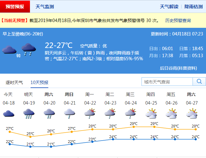 深圳新聞網(wǎng)2019年4月18日訊(記者 陳婕)17日是多日降雨中難得的好天氣,暫停一天的雨又要來(lái)了!今天(18日)午后轉(zhuǎn)(雷)陣雨,夜間降雨趨于頻密。