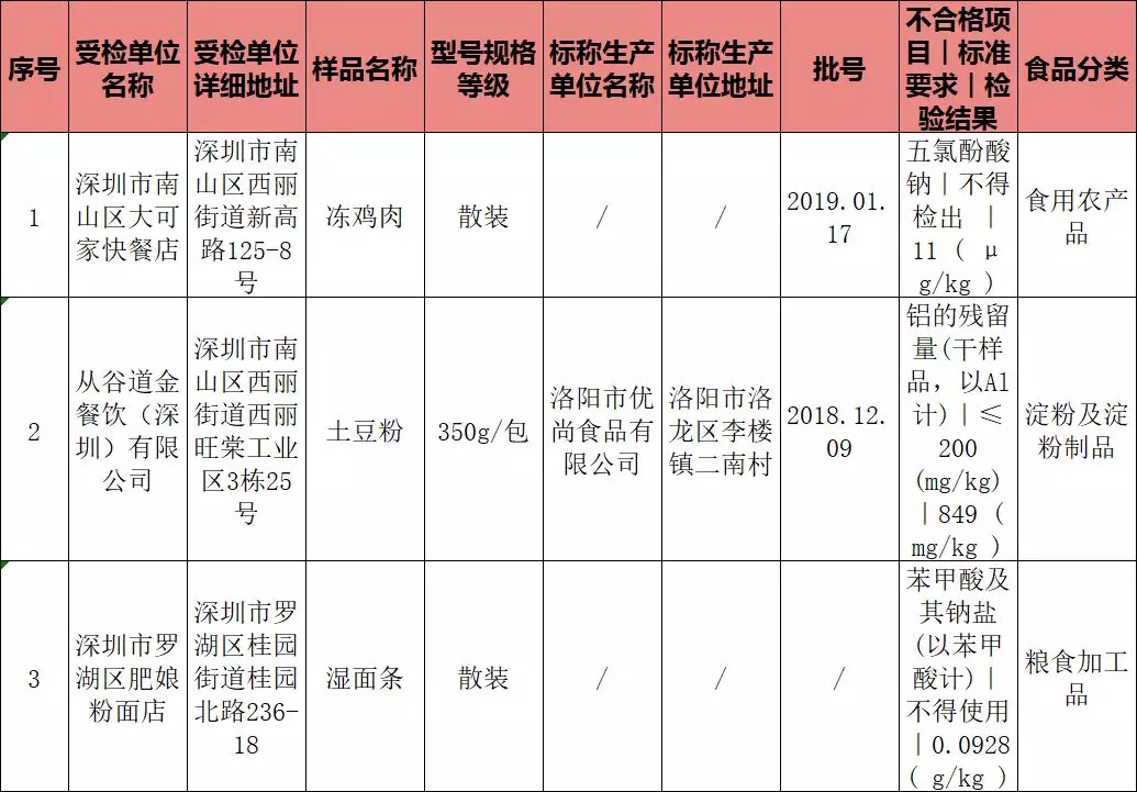 在不合格表單中,食安君一眼就看到了凍雞肉!這批次不合格凍雞肉出自深圳市南山區(qū)西麗街道的大可家快餐店,不合格項(xiàng)目是五氯酚酸鈉(不得檢出 )