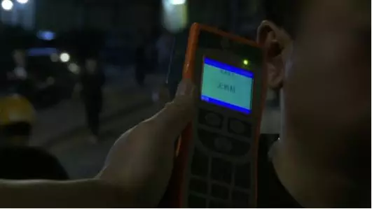 隨后,多名交警趕到了現(xiàn)場,對黑衣男子進行酒精測試,測試結果顯示為零!