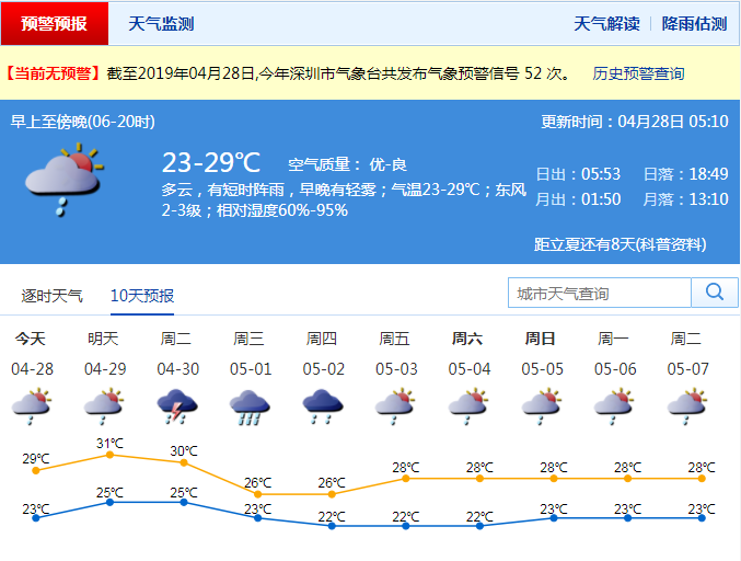 市氣象臺(tái)預(yù)測(cè),今明兩天降雨減弱,29日多云有短時(shí)陣雨,易出現(xiàn)在午后。30日-5月1日又有一次強(qiáng)降雨過程,雨量可達(dá)大雨到暴雨,伴有雷暴、大風(fēng)和短時(shí)強(qiáng)降水。