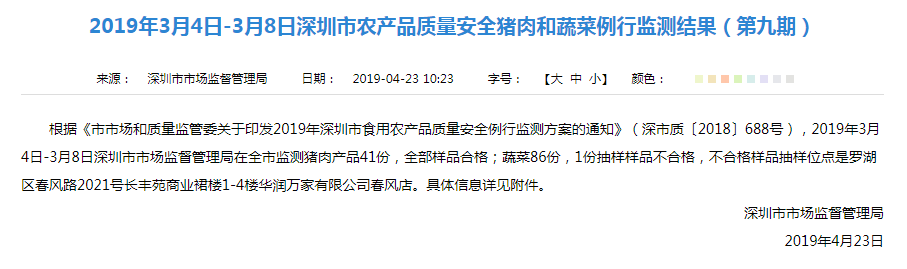 豬肉產品和蔬菜抽檢結果