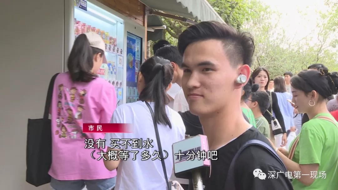 五一假期第一天,就有不少的市民朋友報(bào)料說(shuō),深圳灣公園人流爆棚,到處都是人擠人。下午5點(diǎn),記者來(lái)到園區(qū)內(nèi)的自動(dòng)售賣(mài)機(jī)旁,發(fā)現(xiàn)已經(jīng)擠滿(mǎn)了人,不少人正在排隊(duì)買(mǎi)水。