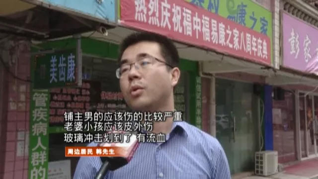 據(jù)目擊者稱,當(dāng)時店鋪內(nèi)有老板一家三口,以及一名女顧客,四人均有不同程度受傷。周邊居民馬上報警,并呼叫了救護車。