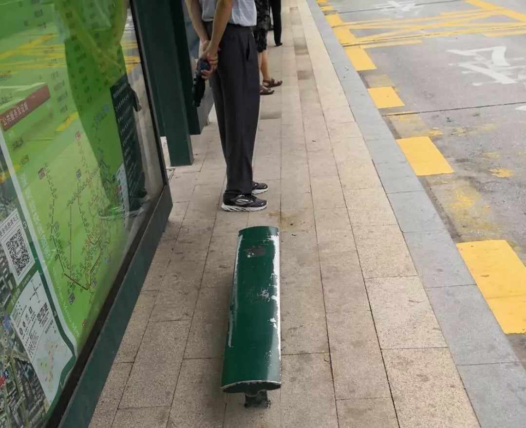市民吐槽公交站候車長椅:活久見!這奇葩高度給誰坐呢?