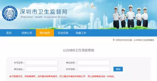 通過(guò)深圳市衛(wèi)生監(jiān)督局官方網(wǎng)站,可查詢?cè)撋蠲廊輬?chǎng)所是否取得衛(wèi)生許可證。