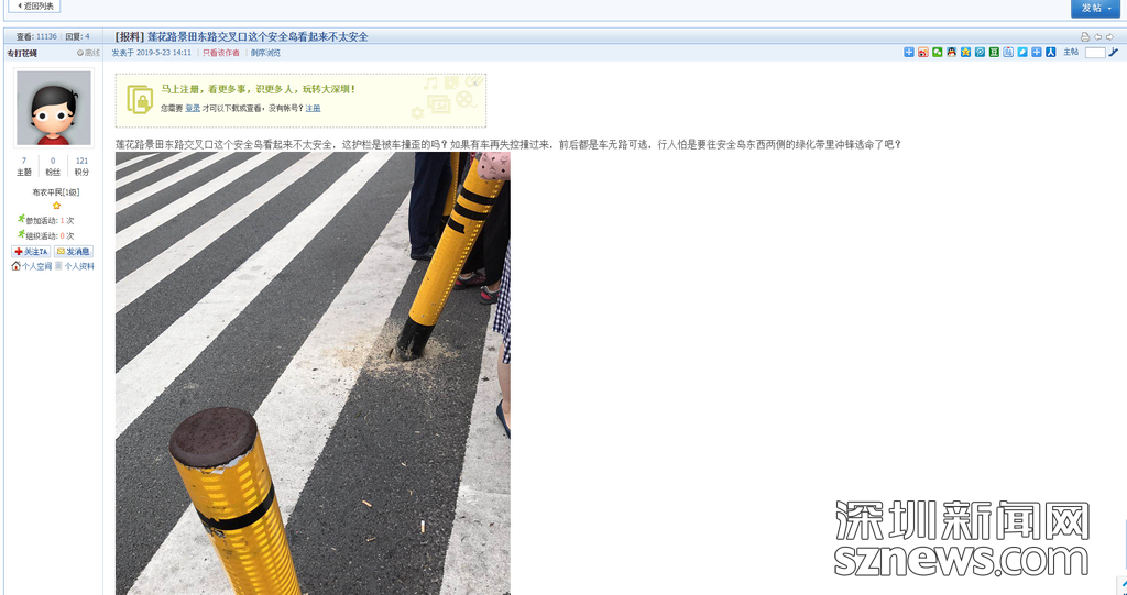 深圳新聞網(wǎng)2019年5月29日訊(記者 劉婷)“蓮花路景田東路交叉口這個(gè)安全島看起來不太安全?!苯眨W(wǎng)友“專打蒼蠅”在深圳論壇爆料稱,蓮花路景田東路交叉口安全島警示樁受損,存在安全隱患。5月29日,記者來到該路段實(shí)地勘察,發(fā)現(xiàn)安全島受損警示樁已全部整改。 (原帖文:蓮花路景田東路交叉口這個(gè)安全島看起來不太安全)