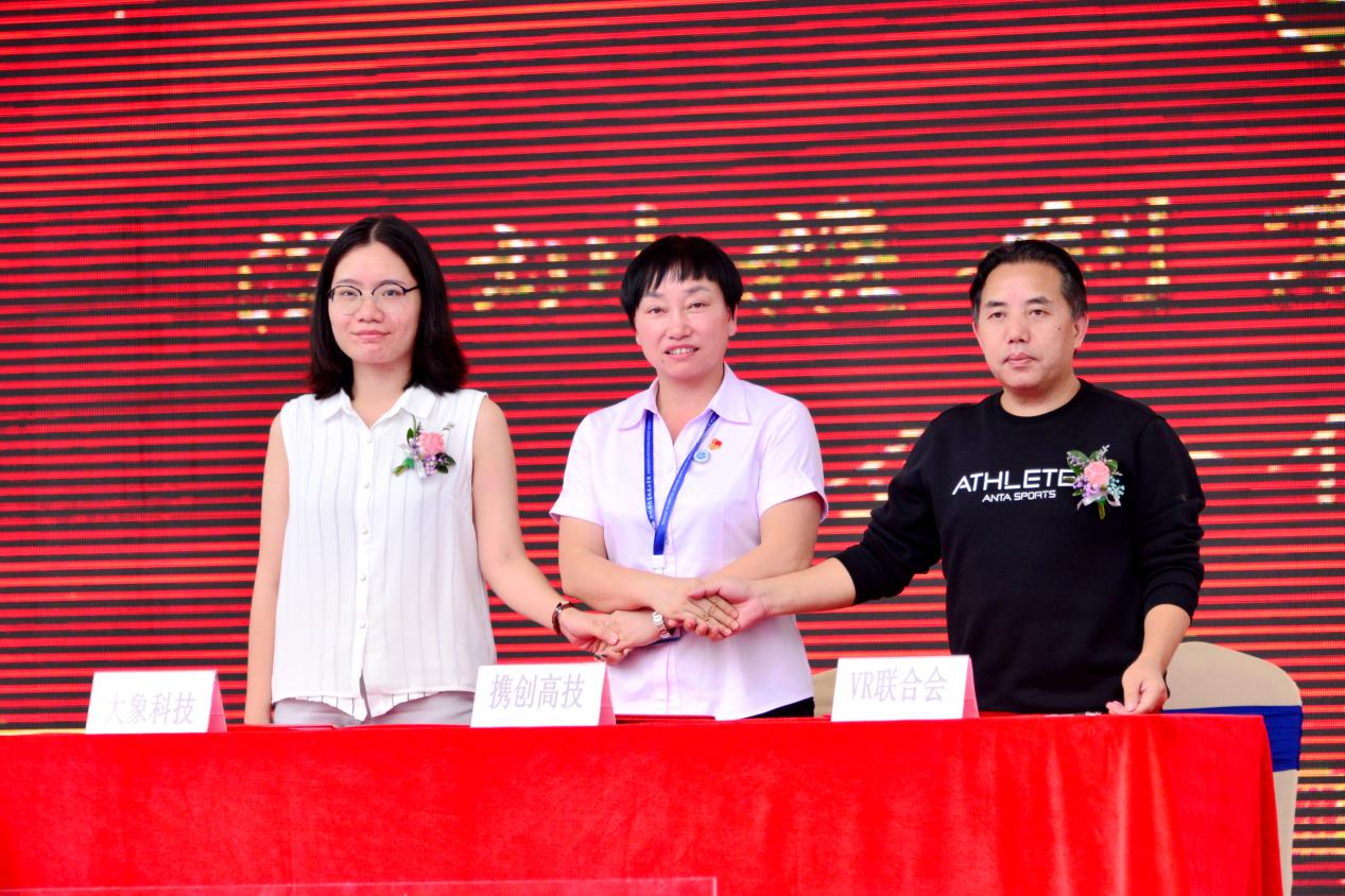 揭牌儀式上學校分別與深圳市虛擬現(xiàn)實產業(yè)聯(lián)合會、深圳市電子競技運動協(xié)會進行了校企合作簽約。