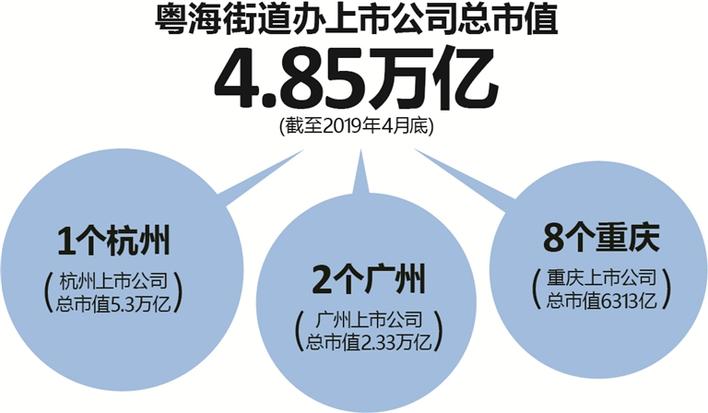 有媒體統(tǒng)計(jì)顯示,在粵海街道這個(gè)開(kāi)車(chē)10分鐘就能逛一圈的“彈丸之地”,有112家公司屬于粵海街道辦,包括4月底市值超過(guò)3萬(wàn)億元人民幣的騰訊控股,中國(guó)恒大、華潤(rùn)置地、騰訊音樂(lè)、邁瑞醫(yī)療、中興通訊等5家千億市值公司,以及大族激光、深信服、金蝶國(guó)際等近20家百億市值公司。截至到今年4月底,A股、H股和美股上市的深圳市粵海街道辦上市公司有多達(dá)112家,總市值達(dá)到了4.85萬(wàn)億元,而杭州市全市的上市公司總市值為5.3萬(wàn)億元。