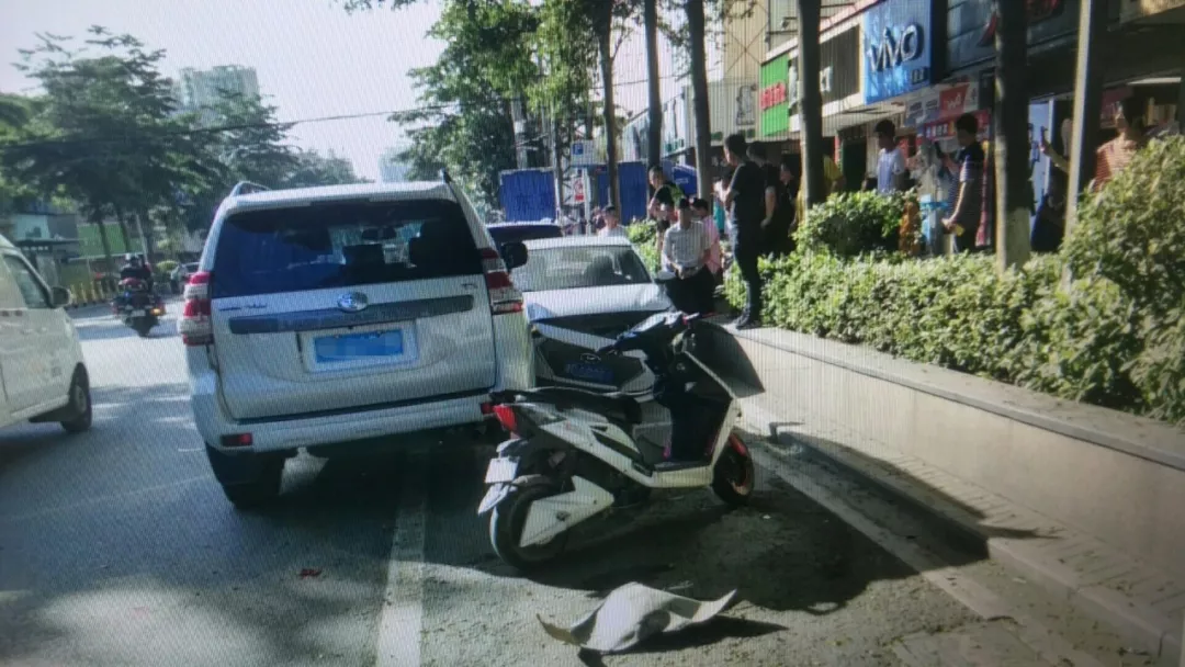 直到15時(shí)30分左右,郭某亮駕駛粵B****P號(hào)牌機(jī)動(dòng)車準(zhǔn)備回沙井,其從羅湖筍崗走北環(huán)大道轉(zhuǎn)107國道,到了沙井走南環(huán)路轉(zhuǎn)東環(huán)路,行駛至沙井上南大街某購物廣場(chǎng)時(shí)追尾了一輛粵S****9號(hào)牌面包車,方向盤失控后又撞到了停在路邊的兩輛小轎車。