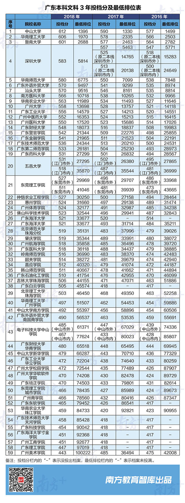 南方教育智庫獨(dú)家統(tǒng)計(jì)了2016-2018共3年廣東高校錄取分和最低排位,為廣東考生全面分析,排位多少名,能上廣東好大學(xué)?
