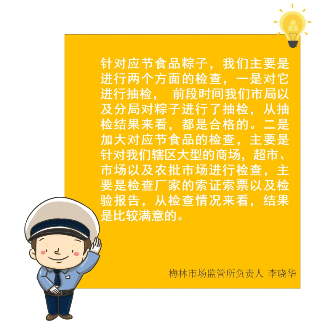 一年一度端午“粽”動(dòng)員時(shí)刻到! 現(xiàn)在是不是想品嘗粽子的美味了? 肉粽肥瘦恰當(dāng)?shù)娜澫?/p> 蛋黃粽蛋黃留油的鮮潤(rùn) 白粽沾綿糖的甜醇...... 于是總會(huì)來一場(chǎng) 甜咸粽黨battle 而有職業(yè)病的食安君只想關(guān)注安不安全 先關(guān)注下本期的【食安周報(bào)】 2019年食品安全抽樣檢驗(yàn)情況通報(bào) (第二十一期) 本次共抽檢生產(chǎn)、流通、餐飲環(huán)節(jié)應(yīng)節(jié)食品(粽子)200批次,涉及經(jīng)營(yíng)主體123家次,共檢測(cè)食品指標(biāo)1738項(xiàng)次,全部檢測(cè)合格。 全部合格 深圳的小伙伴 看完這個(gè)抽檢 吃起粽子來,就更安心啦~ 抽檢現(xiàn)場(chǎng) 針對(duì)應(yīng)節(jié)食品粽子 執(zhí)法人員進(jìn)行兩個(gè)方面的檢查 戳視頻直擊檢查現(xiàn)場(chǎng) 現(xiàn)場(chǎng)還對(duì)制作粽子原料糯米 還有蔬菜進(jìn)行快檢 糯米我們檢測(cè)了黃曲霉毒素B1 沒有發(fā)現(xiàn)問題 蔬菜樣品(農(nóng)藥殘留)抑制率都低于50% 兩個(gè)都是合格的 可以放心吃 但是你懂得怎么吃嗎? 食安君這就告訴你 吃粽子的正確姿勢(shì)? 食用過量粽子而引發(fā)消化不良的情況時(shí)常發(fā)生老人、小孩和有胃腸道基礎(chǔ)疾病的人 要格外注意! 粽子好吃但要適可而止 粽子選購秘籍 說起買粽子,食安君又要老生常談了,一定要通過正規(guī)渠道購買哦,不要購買路邊的“三無”粽子。 同時(shí)注意查看外包裝的食品標(biāo)簽,如生產(chǎn)日期、保質(zhì)期、生產(chǎn)者名稱和地址、成分或配料表、食品添加劑、食品生產(chǎn)許可證編號(hào)等標(biāo)識(shí)是否齊全;并仔細(xì)檢查粽子包裝是否完整,真空包裝是否漏氣漲袋,散裝粽子有無變質(zhì)現(xiàn)象等。 健康吃粽小貼士 1.粽子大多屬于高糖、高鹽、高能量食物,不宜過量食用,尤其是糖尿病、三高、肝膽等疾病患者,一定要控制食用量。 2.吃粽子時(shí),最好搭配一些蔬菜、湯羹等,既均衡營(yíng)養(yǎng),又有助消化;同時(shí),盡量少蘸醬油、砂糖等調(diào)味料,這樣會(huì)增加鈉和糖的攝入,不利于健康。 粽子好吃不貪吃 上周,我們向市民發(fā)出了 “你點(diǎn)名,我們來抽檢”的倡議, 我們的食品安全快檢車就來到福田梅林 食品安全快檢車 最后 食安君還是要提醒大家 外出就餐要到證照齊全 環(huán)境衛(wèi)生的餐館 學(xué)會(huì)看“笑臉”選餐廳 不選擇無證或衛(wèi)生環(huán)境差的路邊攤 歡迎大家積極參與食品安全監(jiān)督工作 關(guān)注每周食品抽檢信息公布 欄目:食安周報(bào) 民以食為先,食以安為天,食品安全是社會(huì)各界最為關(guān)注的重點(diǎn)。深圳市市場(chǎng)監(jiān)管局聯(lián)合《第一現(xiàn)場(chǎng)》欄目推出《食安周報(bào)》欄目,發(fā)布食品安全權(quán)威信息,為市民帶來第一手食安資訊。 播出時(shí)間:每周二晚上7:30 播出平臺(tái):深圳廣電《第一現(xiàn)場(chǎng)》 每周抽檢信息通報(bào) 定期公布最新的食品及食用農(nóng)產(chǎn)品抽檢信息。 案件現(xiàn)場(chǎng) 直擊市市場(chǎng)監(jiān)管局執(zhí)法人員現(xiàn)場(chǎng)執(zhí)法,以案件解讀食品安全知識(shí),增強(qiáng)現(xiàn)場(chǎng)感。 食品安全科普 對(duì)食品安全相關(guān)知識(shí)進(jìn)行科普,回應(yīng)近期食品安全相關(guān)謠言,提示食品安全風(fēng)險(xiǎn)。 編輯整理:深圳食事藥聞 轉(zhuǎn)載請(qǐng)注明以上內(nèi)容