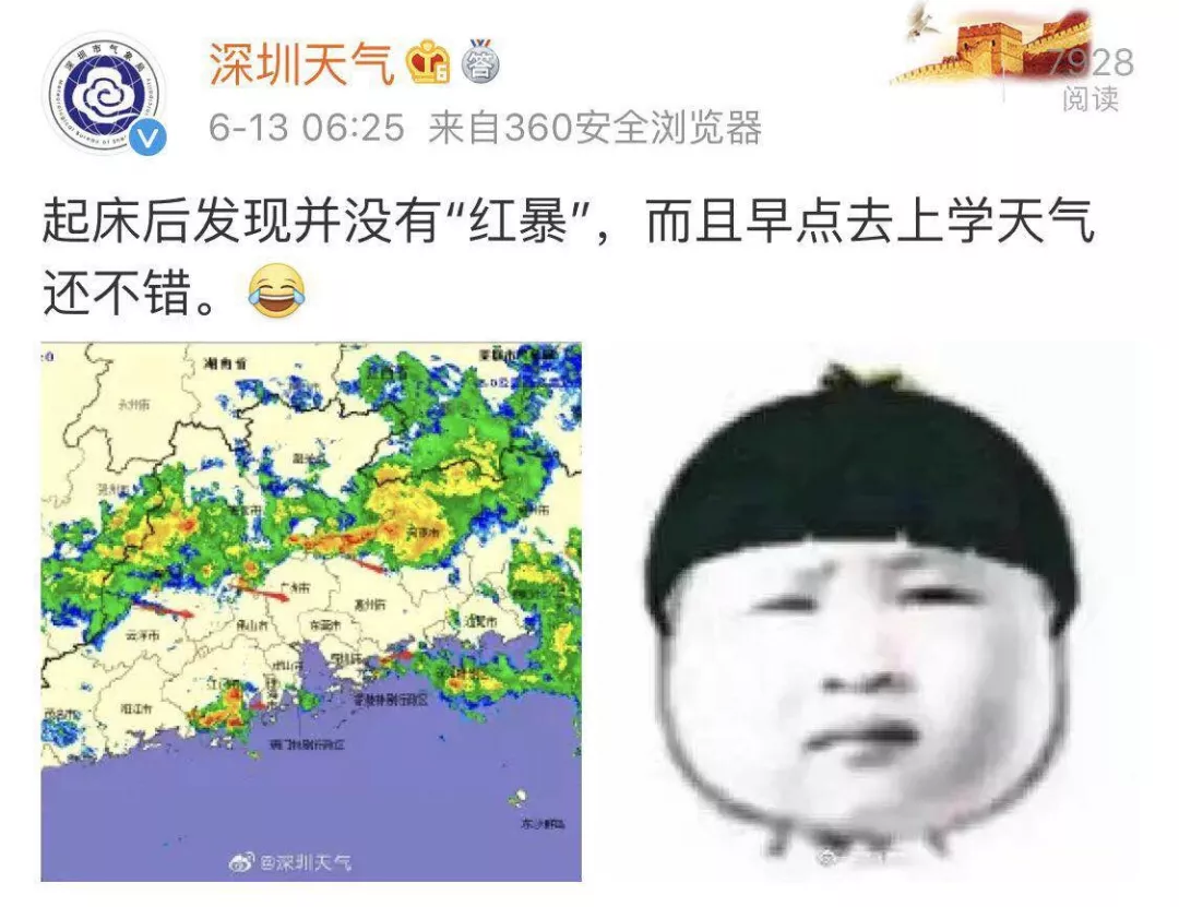 根據(jù)統(tǒng)計,從08年到現(xiàn)在,深圳市氣象局一共發(fā)布過32次暴雨紅色預(yù)警。你們以為這就代表了32次停課嗎?哈哈哈哈哈哈想得美,其中真正停課的只有9次,其余的都是在暑假、周末、夜間。將近12年,因為暴雨才停了9次課(沒算單獨的臺風(fēng)停課),平均一年一次都不到。