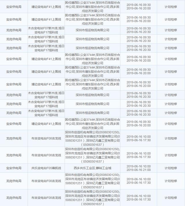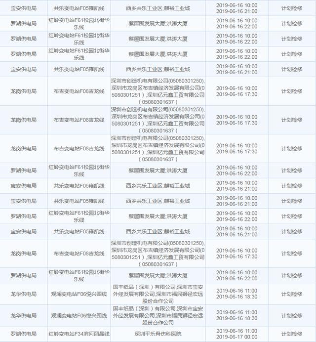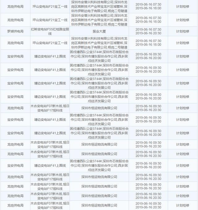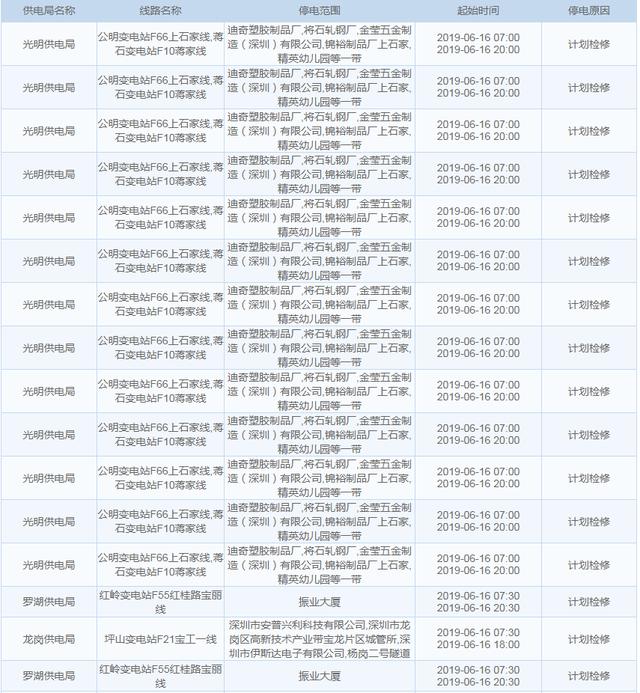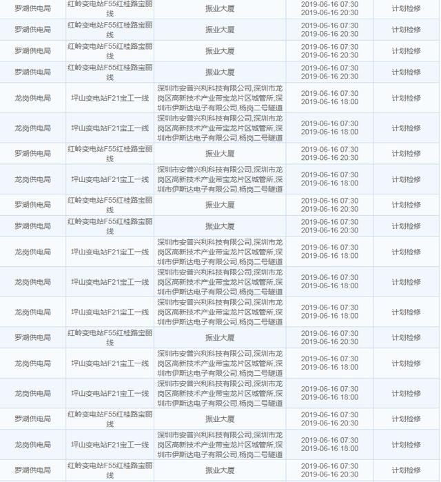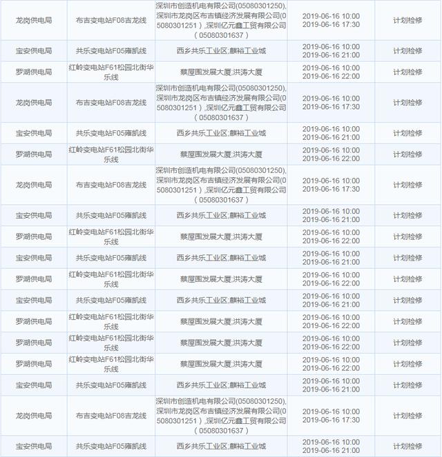 南方電網發(fā)布6月13日至6月16日深圳停電計劃 涉及多個區(qū)