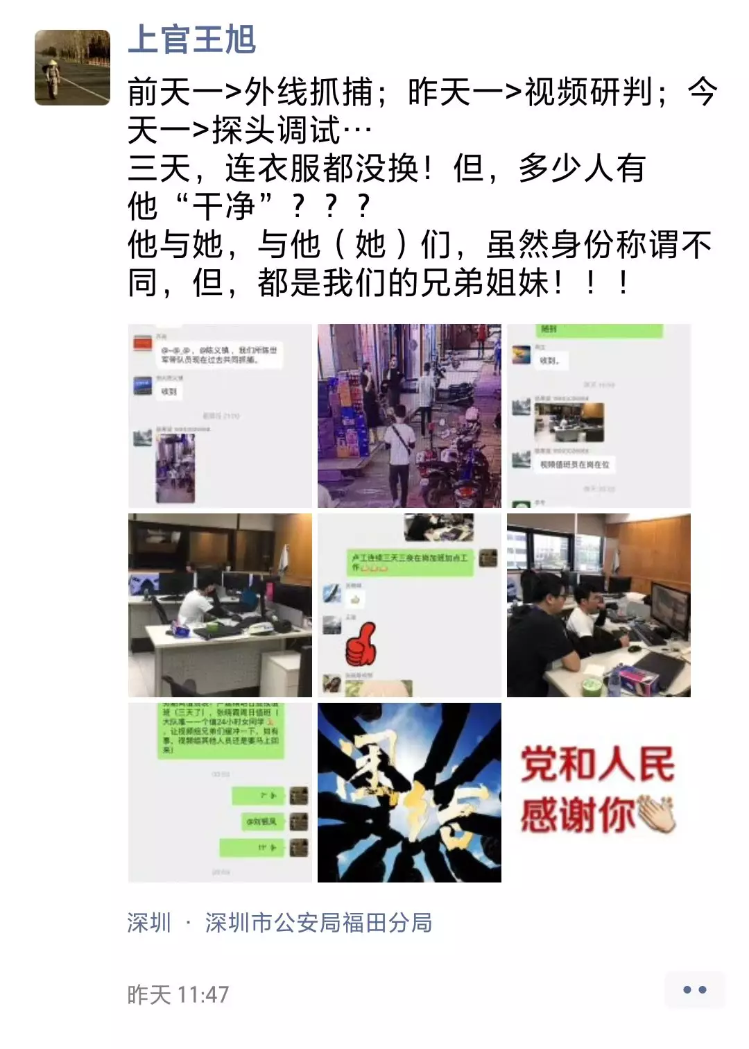 ▲華強(qiáng)北派出所民警魏成增朋友圈