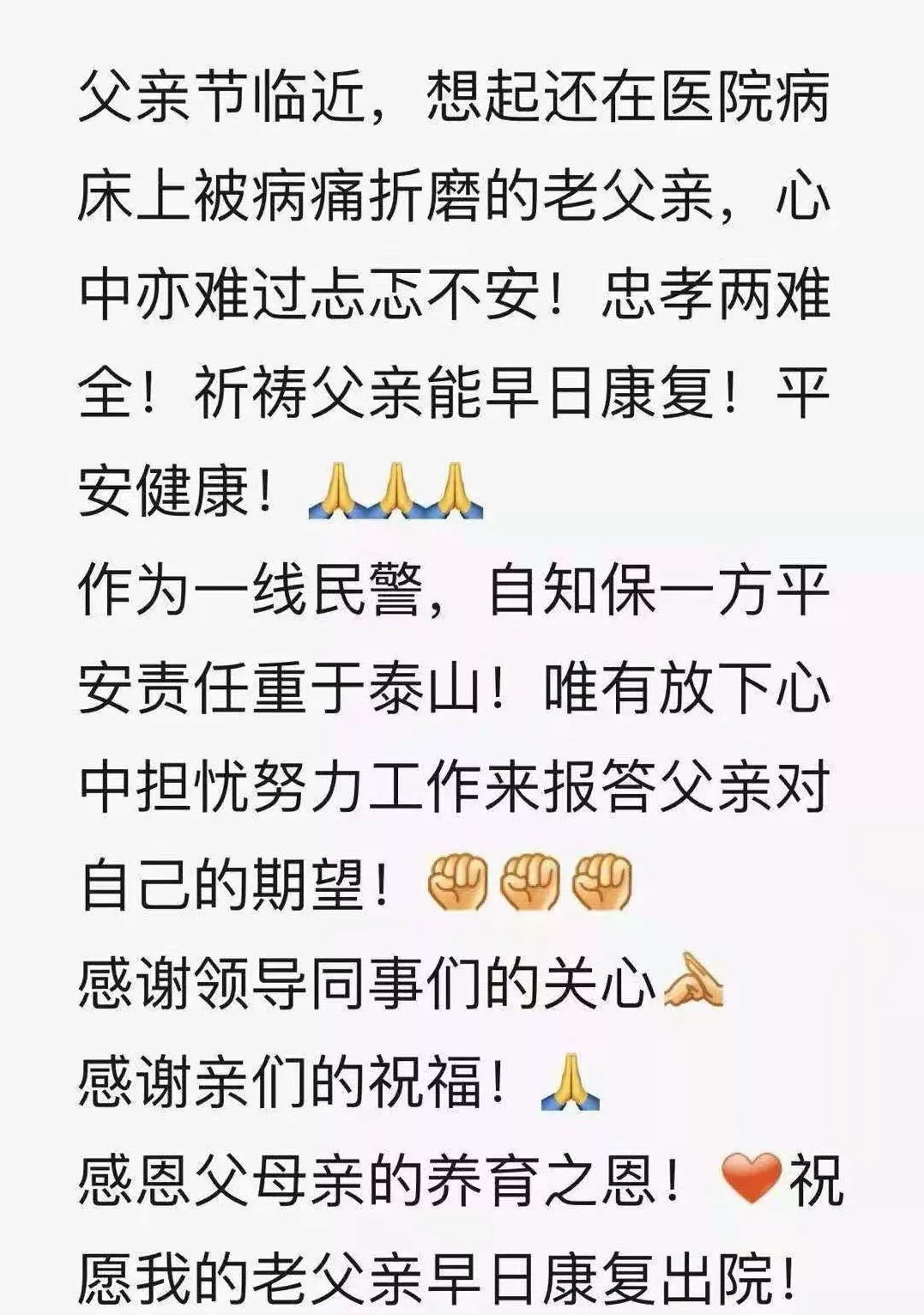 ▲機(jī)訓(xùn)三中隊輔警陳宇文朋友圈