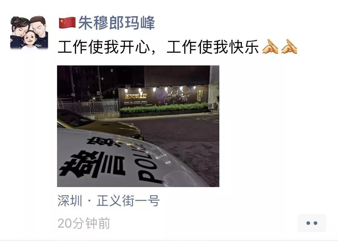 ▲華強(qiáng)北派出所民警馮長涌朋友圈