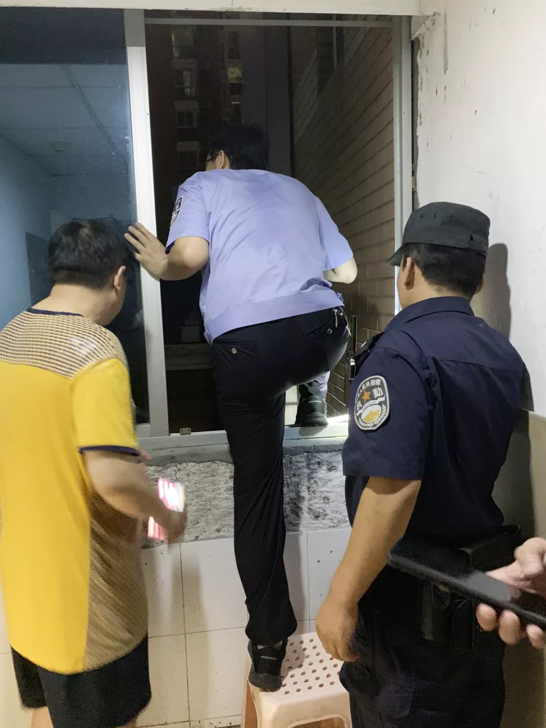 時(shí)間一分一秒地流逝,救援工作難以繼續(xù),跳樓女子情緒越來越激動(dòng)……現(xiàn)場(chǎng),劉智所長(zhǎng)當(dāng)機(jī)立斷,突然做出了一個(gè)驚人的舉動(dòng):只身一人,在沒有任何保護(hù)措施的情況下,跳到窗外平臺(tái)上,與兩名跳樓女子進(jìn)行溝通,并嘗試慢慢靠近,抓住機(jī)會(huì)實(shí)施營(yíng)救。