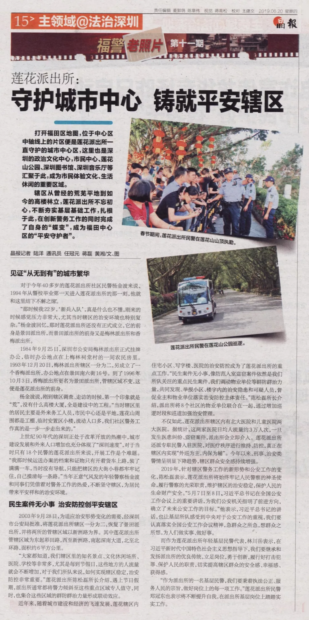 “那時候我22歲,‘新兵入隊’,真是什么也不懂,剛來的時候感覺壓力非常大,尤其當(dāng)時轄區(qū)的治安環(huán)境也特別復(fù)雜?!睏罱鸩ɑ貞?那時蓮花派出所還沒有正式成立,它的前身是景田派出所,而景田派出所的前身又是梅林派出所和香梅派出所。