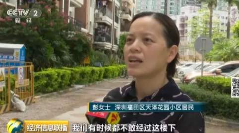 深圳福田區(qū)天澤花園小區(qū)居民彭女士:我們有時(shí)候都不敢經(jīng)過這樓下,萬一被上面的鋼管砸到,估計(jì)都沒命了。