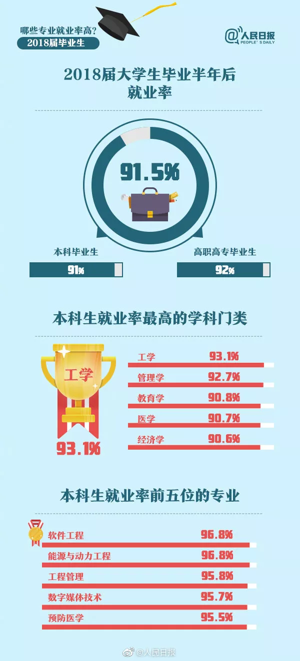 2018屆大學畢業(yè)生就業(yè)率91.5%,