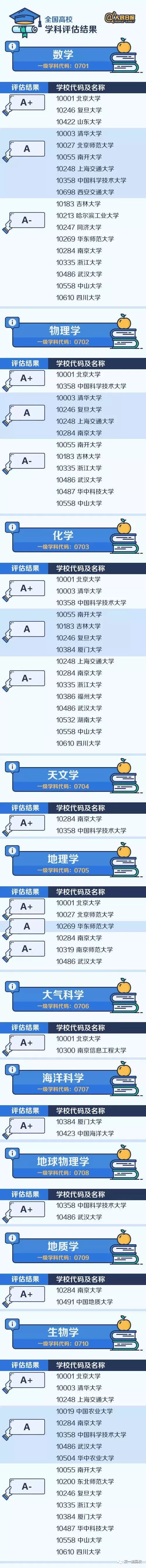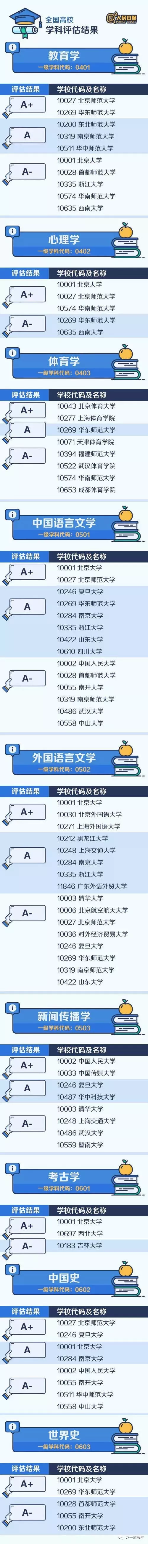 人民日報微博專門整理匯總了A類學科(包括A+、A、A-三檔),來看看這些中國最頂尖的學科名單都分布在哪些大學?