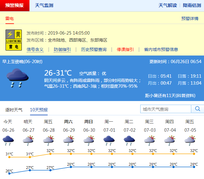 市氣象局預(yù)計深圳今日氣溫26-31℃;陰天間多云,有陣雨或雷陣雨,部分時間雨勢較大;西南風(fēng)2-3級;相對濕度70%-95%。提醒市民未來幾天雷陣雨多發(fā),注意躲避雷暴和局地短時強(qiáng)降水。