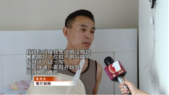 本月11日上午十點(diǎn)左右,當(dāng)時(shí)餐廳接到第一單美團(tuán)外賣的訂單,騎手剛進(jìn)店就開始催單,幾分鐘之后開始謾罵前臺(tái)服務(wù)員。