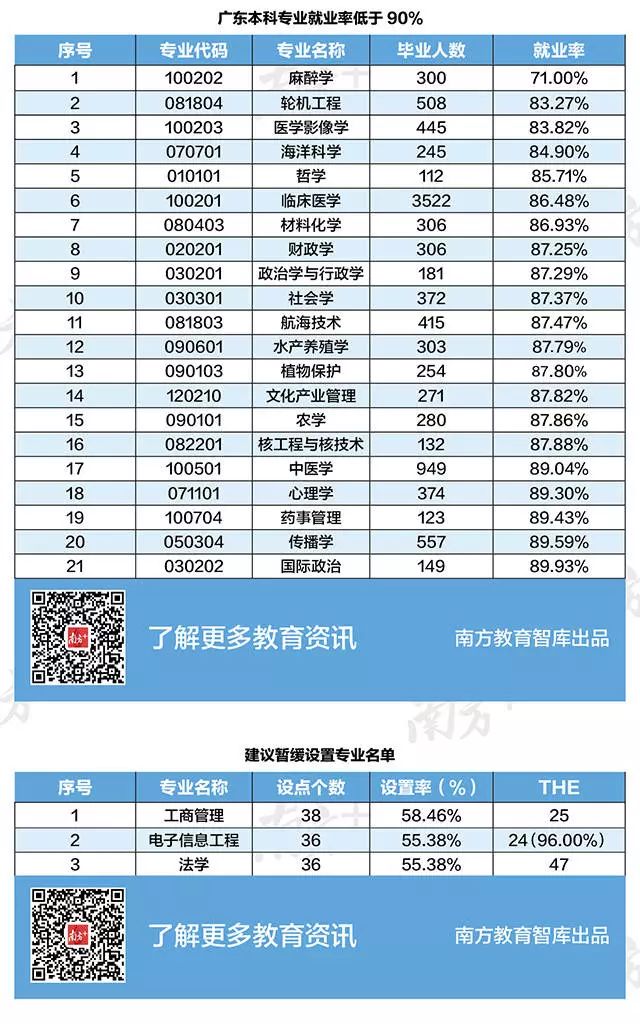 2018年廣東本科畢業(yè)生初次就業(yè)率為93.84%。就業(yè)率最高前20名中,屬工科類(lèi)的專(zhuān)業(yè)最多,有10個(gè)。