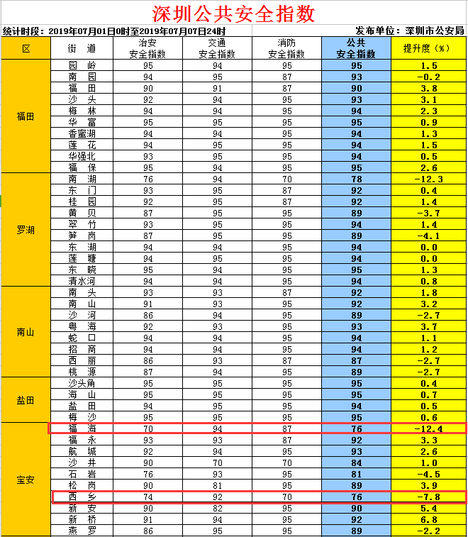 深圳新聞網(wǎng)2019年7月9日訊 深圳市公安局圍繞市委市政府“城市管理治理年”工作部署要求,借鑒國(guó)內(nèi)其他城市的成功做法,于2016年4月5日開(kāi)始,每周通過(guò)《深圳特區(qū)報(bào)》、《深圳新聞網(wǎng)》、市公安局門(mén)戶網(wǎng)站、公安微信、微博,向社會(huì)發(fā)布一次深圳公共安全指數(shù),保障市民群眾知情權(quán)、監(jiān)督權(quán),引導(dǎo)社會(huì)各界廣泛參與“平安深圳”建設(shè)。