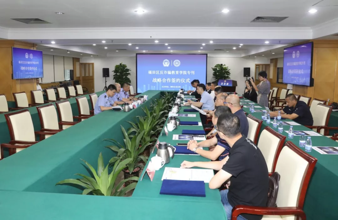 活動現(xiàn)場,福田分局分別與福田區(qū)委政法委、蓮花街道辦、北大深圳醫(yī)院、深圳外國語學校、中國郵政儲蓄銀行、聯(lián)想有限公司(深圳)、平安大廈物業(yè)、馬成時代廣場、卓越世紀廣場、山姆會員店、梅林農(nóng)批市場、順豐快遞共12家單位和企業(yè)簽訂了《福田反詐騙教育學院??瘧?zhàn)略合作協(xié)議》。