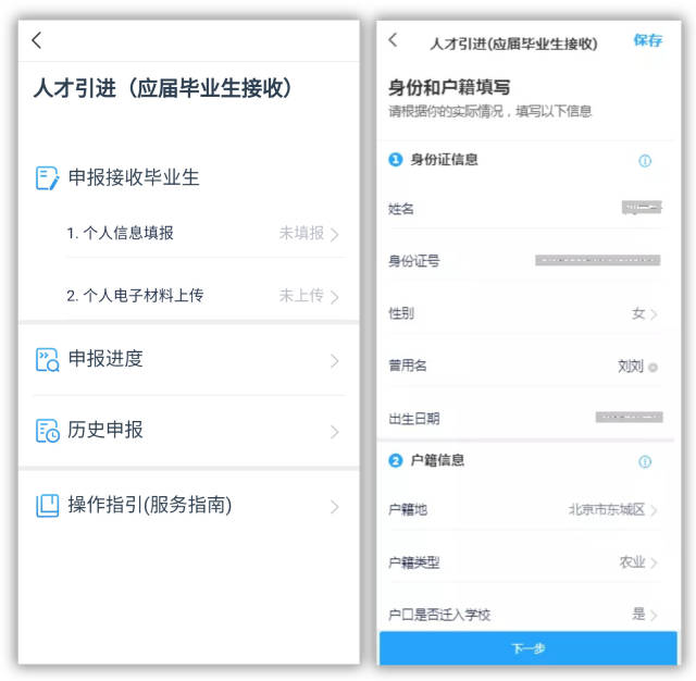 畢業(yè)生根據(jù)個(gè)人實(shí)際情況,按照系統(tǒng)提示填寫(xiě)身份和戶(hù)籍信息、教育和綜合信息兩大類(lèi)信息。
