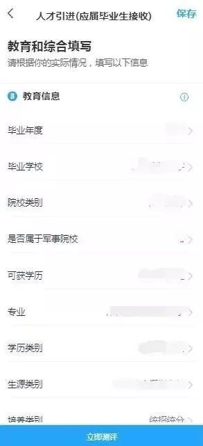 填寫(xiě)完成后點(diǎn)擊下方測(cè)評(píng)按鈕,系統(tǒng)將對(duì)填寫(xiě)的信息進(jìn)行測(cè)評(píng)。