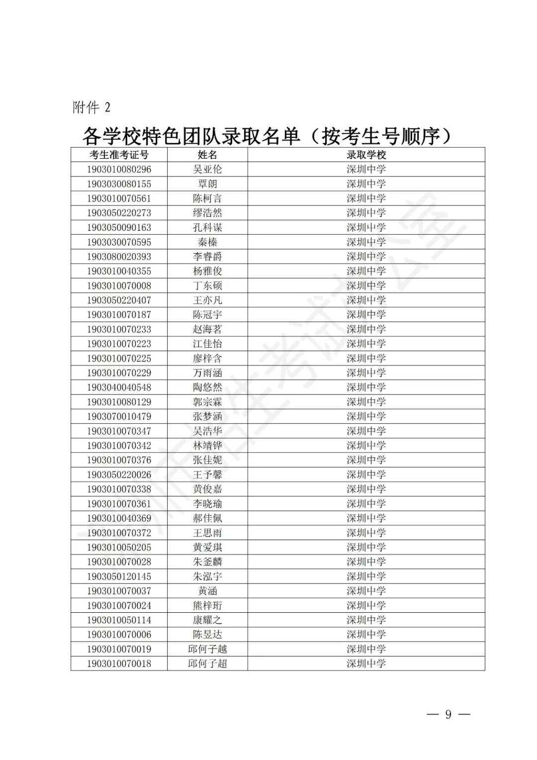 深圳公布2019年公辦高中特色團(tuán)隊(duì)錄取標(biāo)準(zhǔn) 附錄取名單