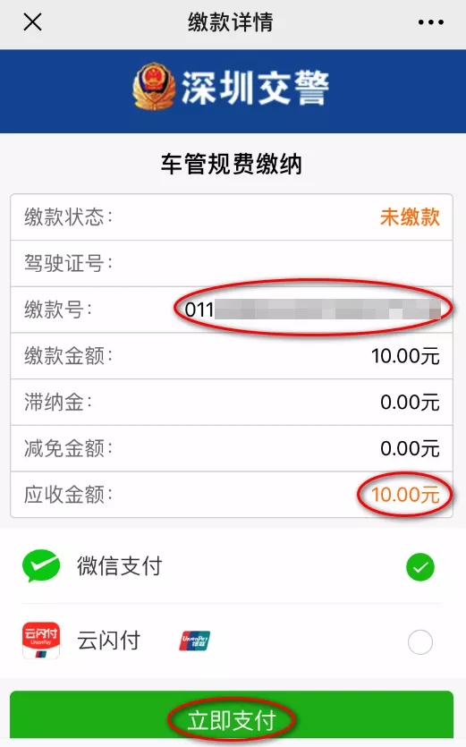 03 提交繳費(fèi)后,核對(duì)繳款號(hào)(前面會(huì)多01),應(yīng)收金額為10元。繳費(fèi)后再次查詢(xún)?cè)摿魉瑺顟B(tài)為“核銷(xiāo)中”(即繳費(fèi)成功)。