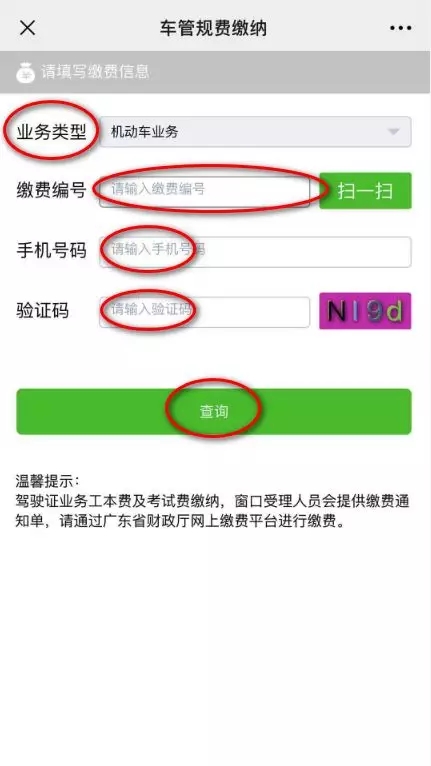 02 業(yè)務(wù)類(lèi)型選擇【機(jī)動(dòng)車(chē)業(yè)務(wù)】,輸入繳費(fèi)編號(hào)(繳費(fèi)流水號(hào)),填寫(xiě)本人/代理人手機(jī)號(hào)碼、驗(yàn)證碼后,點(diǎn)擊“查詢(xún)”。