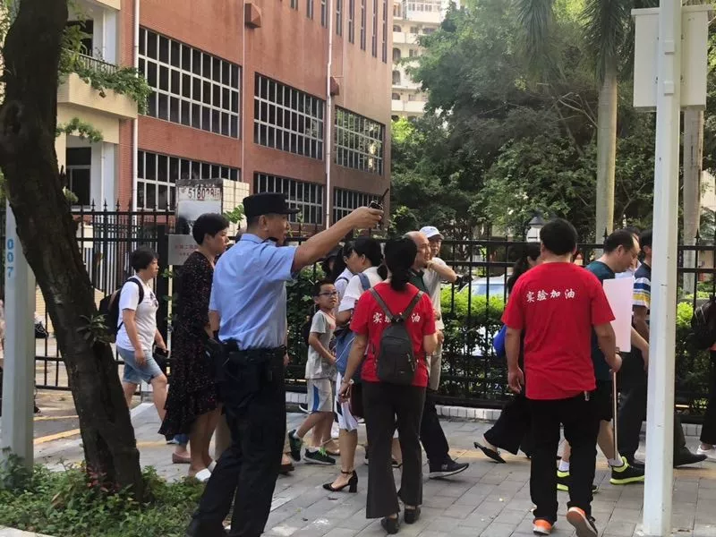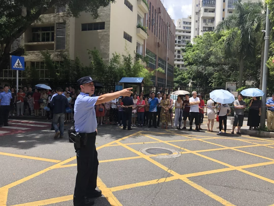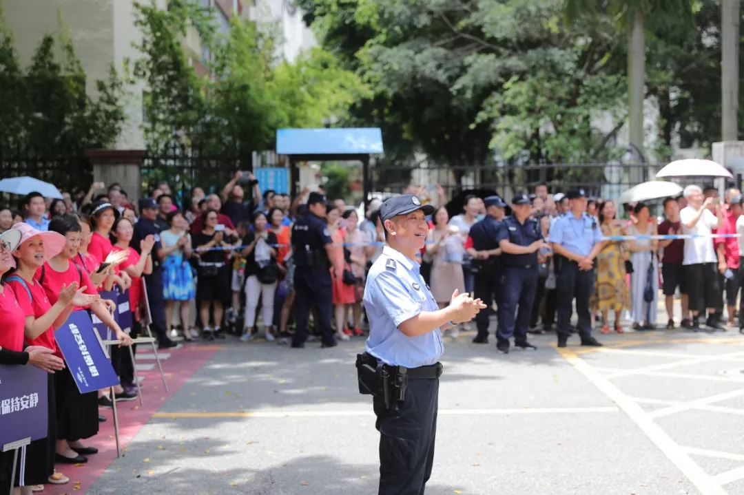在深圳實(shí)驗(yàn)中學(xué)的校門外,正在執(zhí)勤護(hù)考的通心嶺派出所所長林志強(qiáng)正跟送考的家長們“嘮嗑”。“大家都站這么久了,辛苦了!一會(huì)考試結(jié)束后,咱們來猜一猜第一個(gè)走出來的是男生還是女生?!薄拔也率悄猩!薄拔也率桥!奔议L們一掃臉上焦急的表情,開始笑著討論起來。
