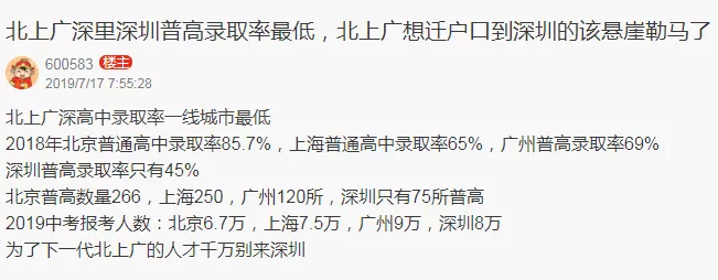 “家在深圳”論壇也有網(wǎng)友爆料,北上廣深四個(gè)一線城市里,數(shù)深圳的普高錄取率最低。