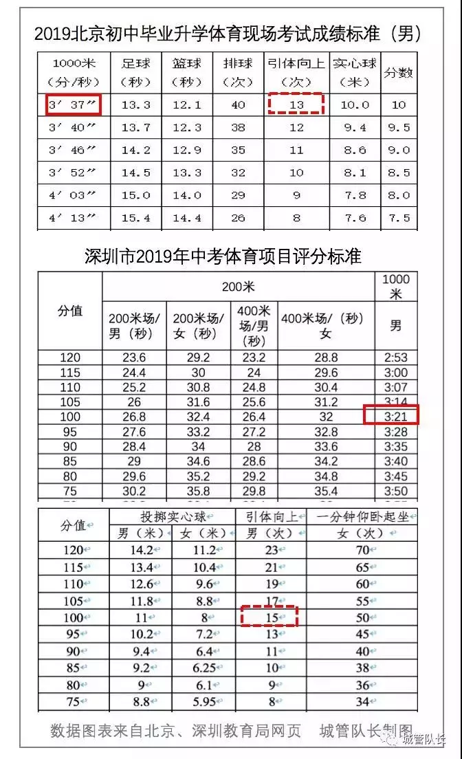 體育成績,男子1000米跑,北京滿分3分37秒,上海滿分3分34秒,廣州滿分3分45秒,而深圳滿分3分21秒,且深圳中考體育占總分比更高。意味著,如果后面跟著一只大老虎,深圳的孩子要比北京的孩子跑快16秒才能不被老虎吃掉。其他項(xiàng)目基本上對深圳的孩子要求更高,比如引體向上,深圳孩子滿分15個(gè),北京孩子滿分13個(gè),上海孩子滿分11個(gè)。網(wǎng)友:憑什么咱的力氣要更大……