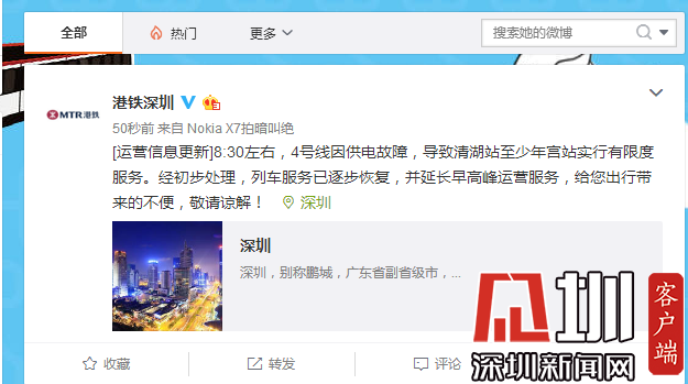 深圳新聞網(wǎng)2019年7月25日訊(見圳客戶端、深圳新聞網(wǎng)記者 韓翔 )7月25日早上,地鐵4號(hào)線出現(xiàn)故障,導(dǎo)致部分乘客延誤。“港鐵深圳”發(fā)微博稱目前列車已逐步恢復(fù)服務(wù)。但據(jù)站內(nèi)廣播通知:由于供電故障,深圳地鐵4號(hào)線前往福田口岸的列車終點(diǎn)站更改為少年宮站。正值上班高峰期,記者在上塘地鐵站內(nèi)看到大量乘客滯留。