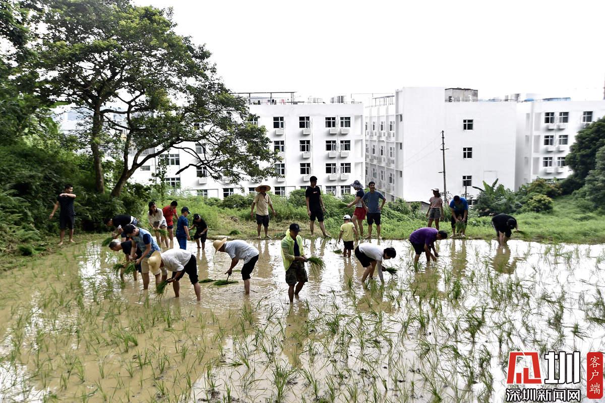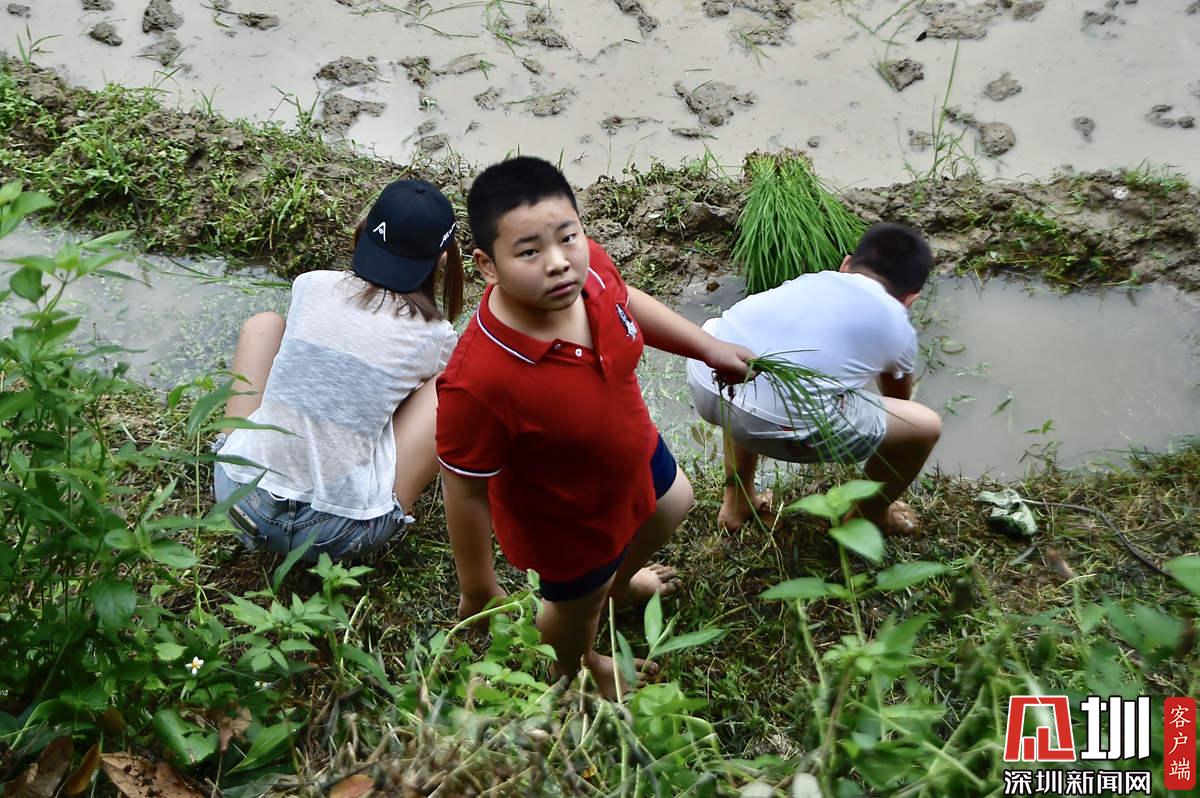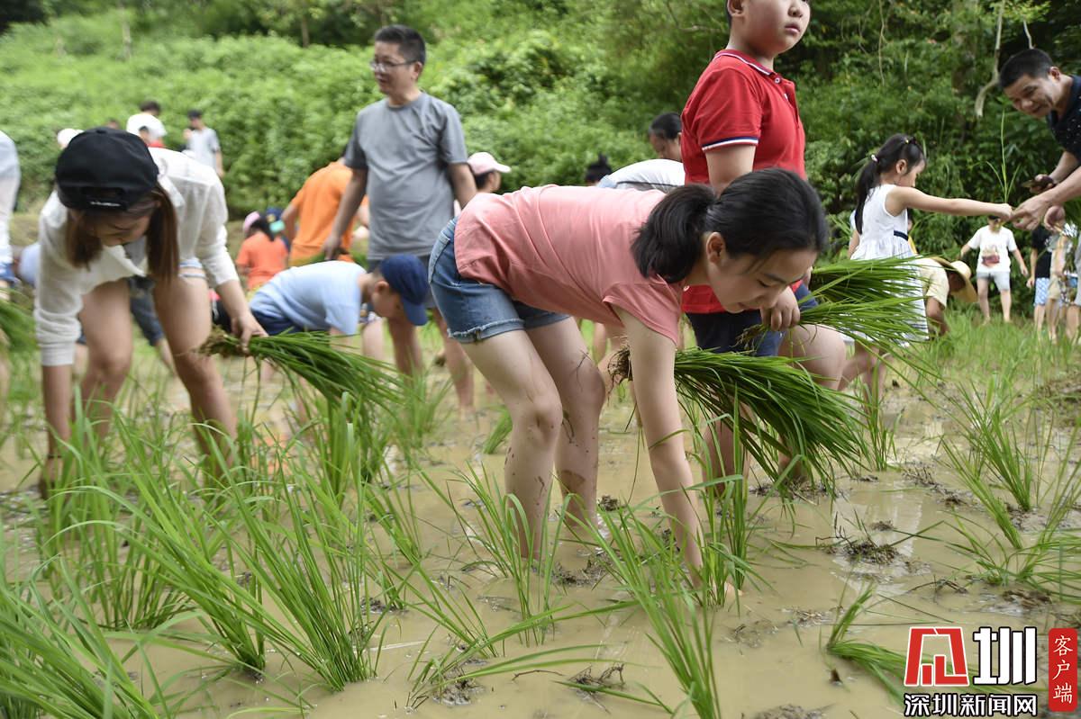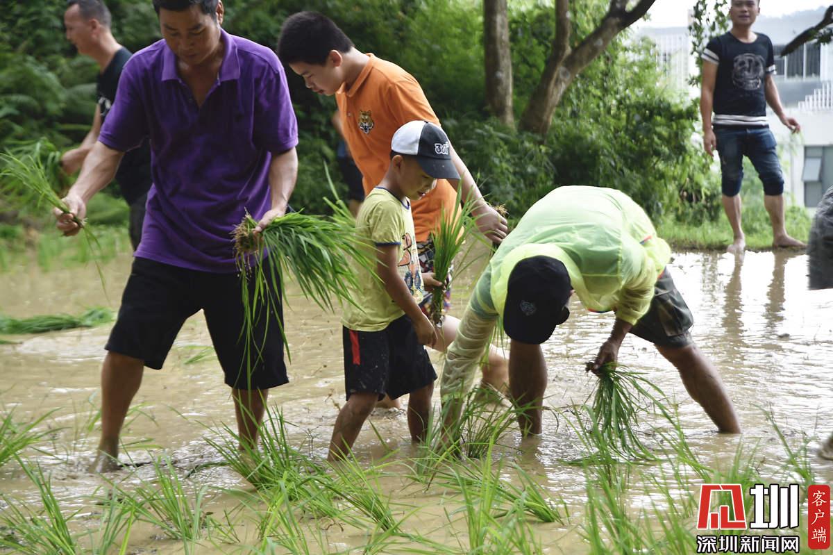 據(jù)了解,本次參加活動的青少年有100多名,他們手持秧苗,腳踩泥漿,在社區(qū)老黨員和家長的指導(dǎo)下體驗插秧農(nóng)耕作業(yè)。據(jù)南嶺村社區(qū)黨委書記張育彪介紹,在深圳高速城市化進程中,南嶺村特意保留了20畝水稻田,作為青少年的勞動教育基地?!澳康氖亲尯⒆觽儾灰泟趧尤嗣竦谋旧?,”他說,“通過感受勞動的艱辛,教育他們要熱愛勞動,富而思進。”