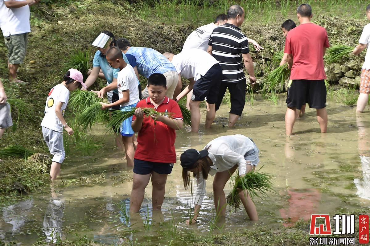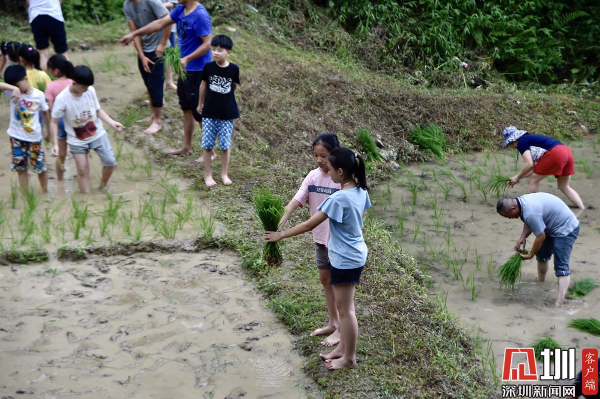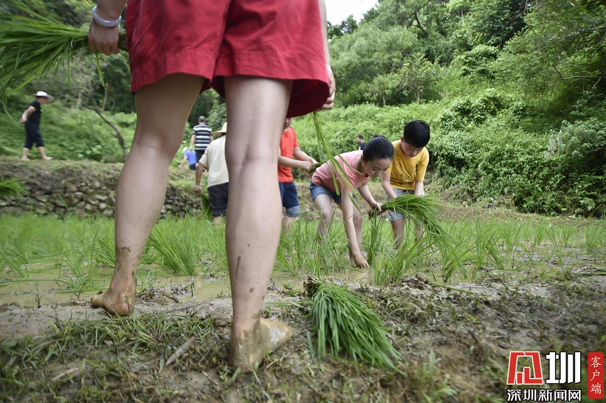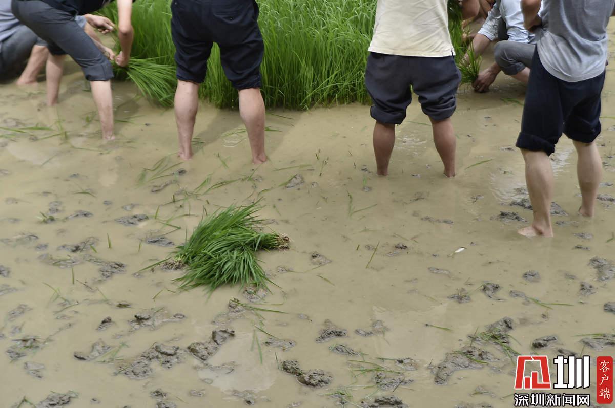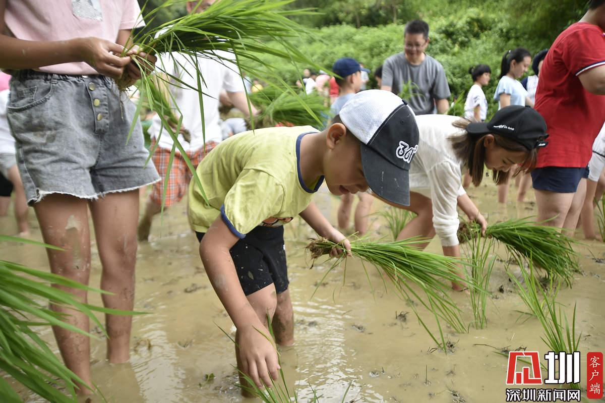 據(jù)了解,本次參加活動的青少年有100多名,他們手持秧苗,腳踩泥漿,在社區(qū)老黨員和家長的指導(dǎo)下體驗插秧農(nóng)耕作業(yè)。據(jù)南嶺村社區(qū)黨委書記張育彪介紹,在深圳高速城市化進程中,南嶺村特意保留了20畝水稻田,作為青少年的勞動教育基地?!澳康氖亲尯⒆觽儾灰泟趧尤嗣竦谋旧?,”他說,“通過感受勞動的艱辛,教育他們要熱愛勞動,富而思進。”