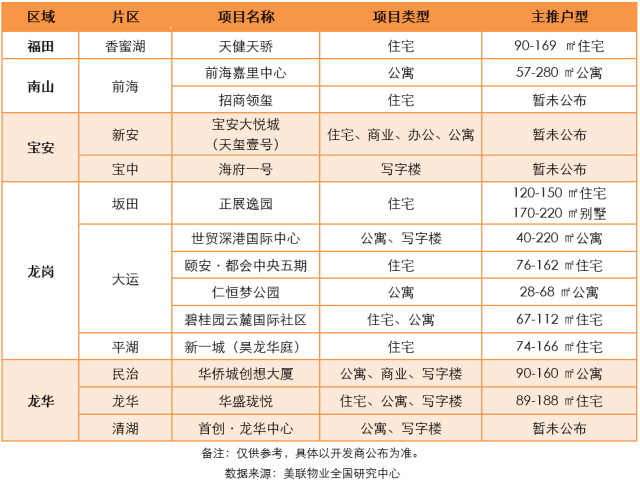 深圳市8月份入市項目預(yù)測列表