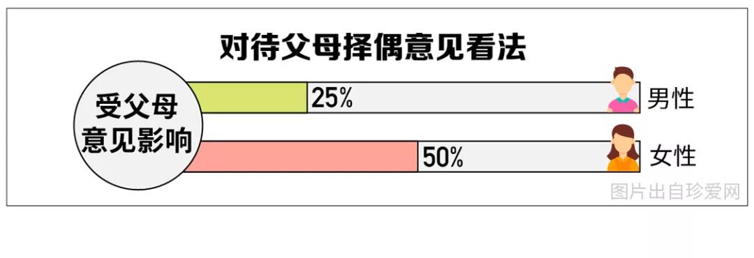 面對(duì)父母的擇偶建議,50%的女性會(huì)受到父母意見(jiàn)影響,僅25%的男性會(huì)受到影響,可見(jiàn),女性比男性更“聽(tīng)媽媽的話(huà)”。另外,從地域來(lái)看,“本地土著”青年更容易受到父母的影響。